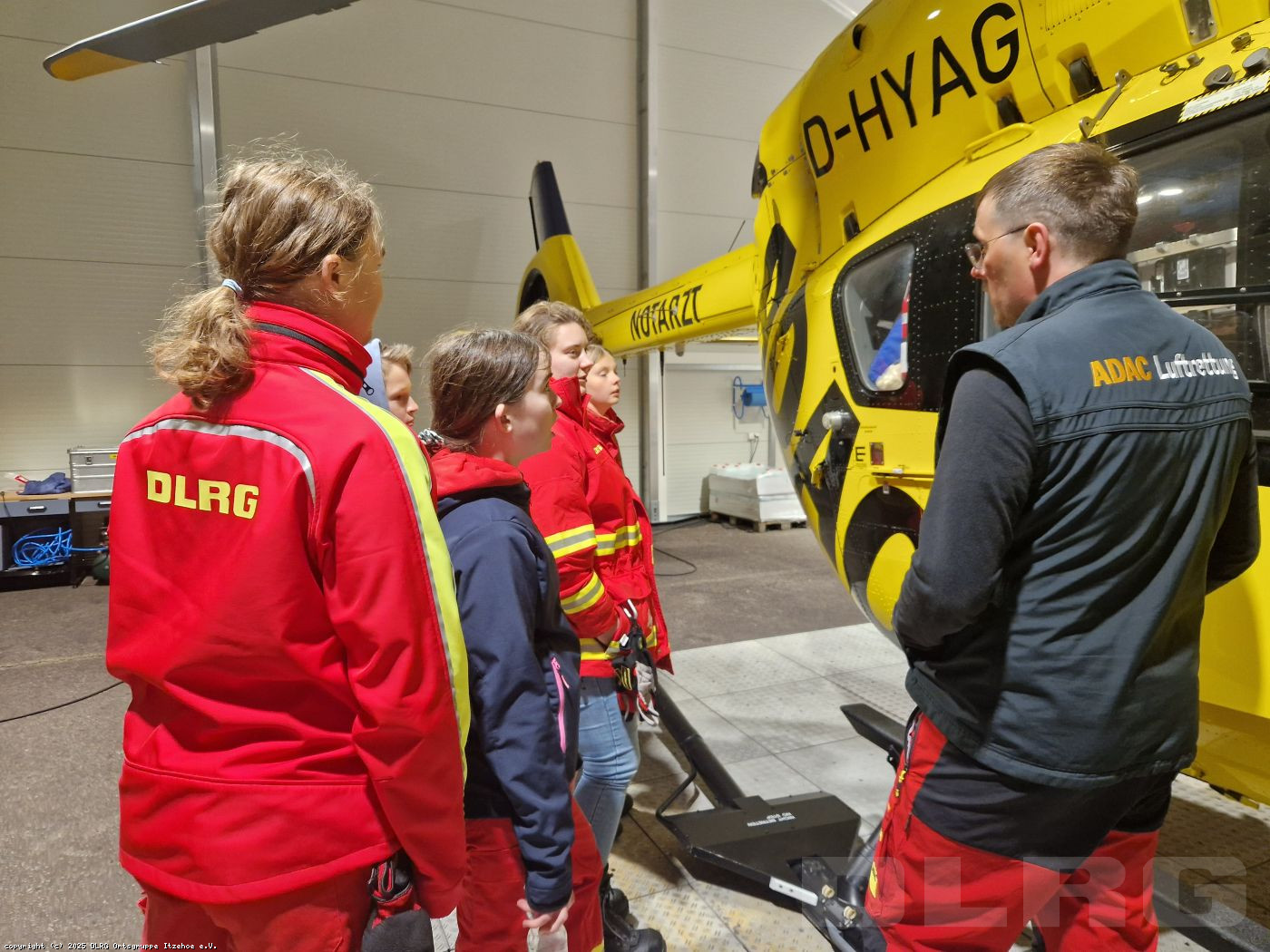 Nach einer kurzen Wartezeit kam der Hubschrauber von seinem letzten Einsatz zurück und wir konnten miterleben, wie er neben uns landete. Während des Tankens wurden wir von der Besatzung herzlich begrüßt und die ersten Fragen beantwortet.