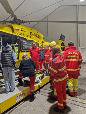 Danach ging es in den Hangar, wo wir uns den Hubschrauber genauer ansehen durften. Neben dem Hubschrauber selbst wurde uns auch das medizinische Material und weitere Dinge wie Überlebensanzüge gezeigt. Nach ungefähr zwei Stunden voller Staunen war es dann vorbei und wir mussten wieder zurück.
